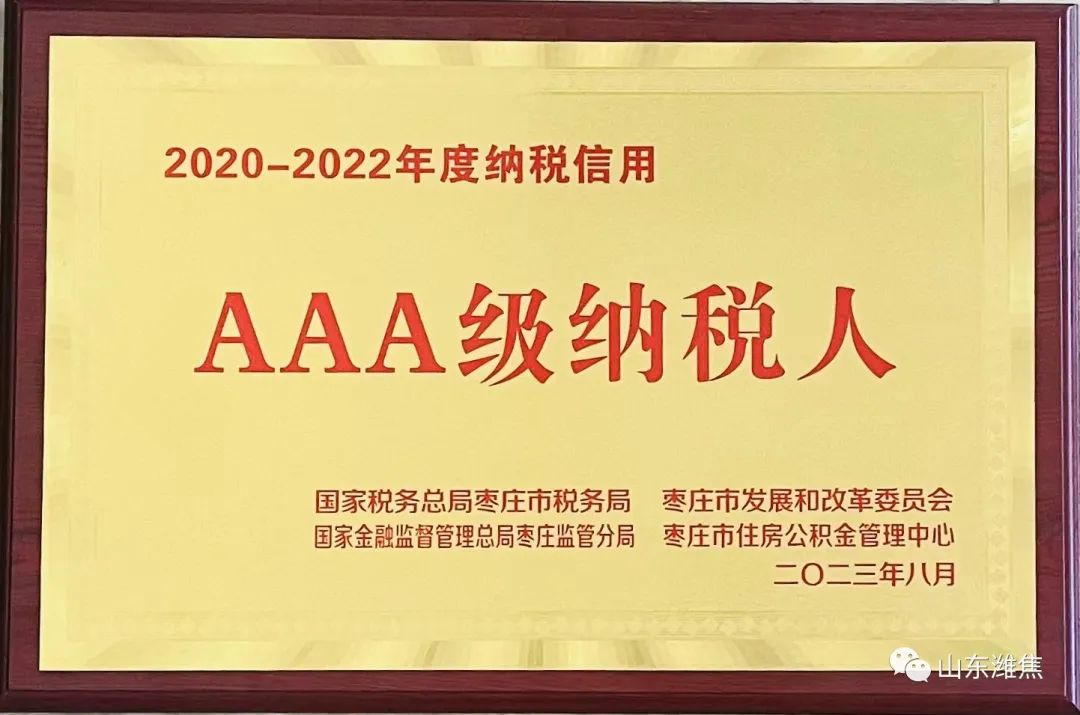 8月29日,国家税务总局枣庄市税务局、枣庄市发展和改革委员会、国家金融监督管理总局枣庄监管分局及枣庄市住房公积金管理中 心联合表彰了2020-2022年度纳税信用AAA级企业,薛城能源公司获评2020-2022年度纳税信用“AAA级纳税人”。荣誉的获得,充分体现了公司税务工作的制度化、规范化,为企业增信、评优、融资等工作奠定了良好基础。