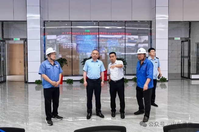 王锋一行深入生产一线考察焦化厂区和天 然气厂区抗爆控制室,实地了解企业安全生产运行状况。刘法东详细汇报公司在安全生产管理、安全信息化系统及智能巡检机器人运行等方面落实情况,并指出,企业借助先进的信息化手段与智能化的设备,在提升生产效率的同时,增强了生产安全性。