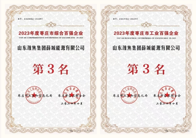 10月25日,枣庄市举行标志性产业链融通对接大会,会上公布了2023年度枣庄市“综合百强企业”和“工业百强企业”名单,薛城能源公司、枣庄杰富意公司均荣登双项榜单,其中,薛城能源公司双项榜单均位列第三名;枣庄杰富意公司分别位列第 二十名和第十三名。